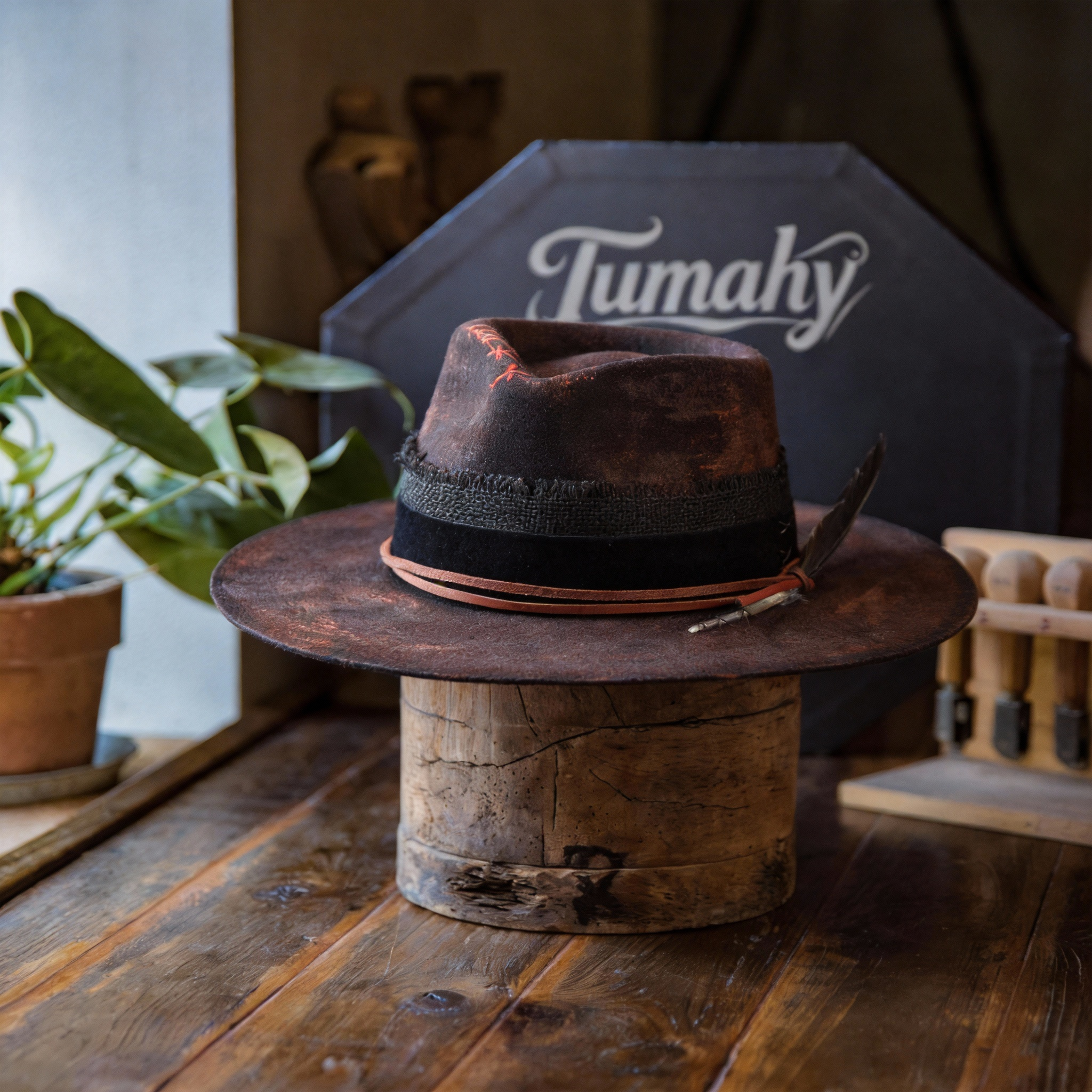 Make a statement with this Custom Burned Felt Fedora Hat, featuring hand-burned detailing that gives every piece a one-of-a-kind look. Crafted in felt with a structured 4 1/2" crown and a 3.5" brim, it blends classic fedora style with bold, artisanal character. Perfect for elevating everyday outfits, festivals, or special occasions, this custom design adds personality and edge while staying timeless.